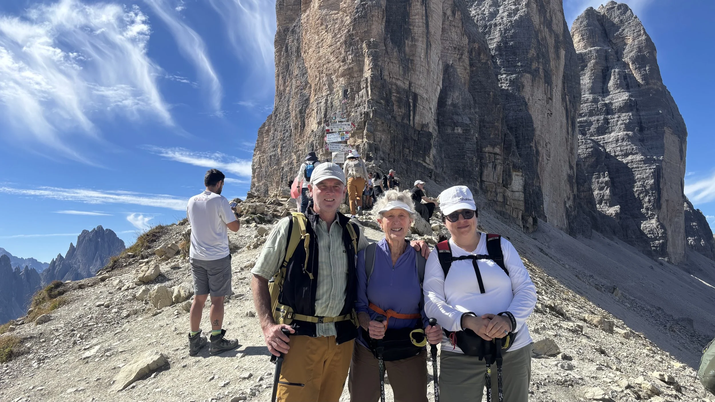 My mom has wanted to hike the Dolomites ever since, as a kid, she saw pictures and heard her father (my grandfather) talk about going there. I am grateful that she could do the trip and blessed that she invited me to be her travel partner. It was a trip of a lifetime for both of us (see the photo below of us with our guide, Lino).